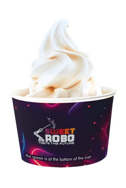 A1: Our friendly robot takes a fresh paper cup and moves along a track, filling it with your choice of ice cream base, followed by your desired syrup and toppings before gently serving the final product for your enjoyment.